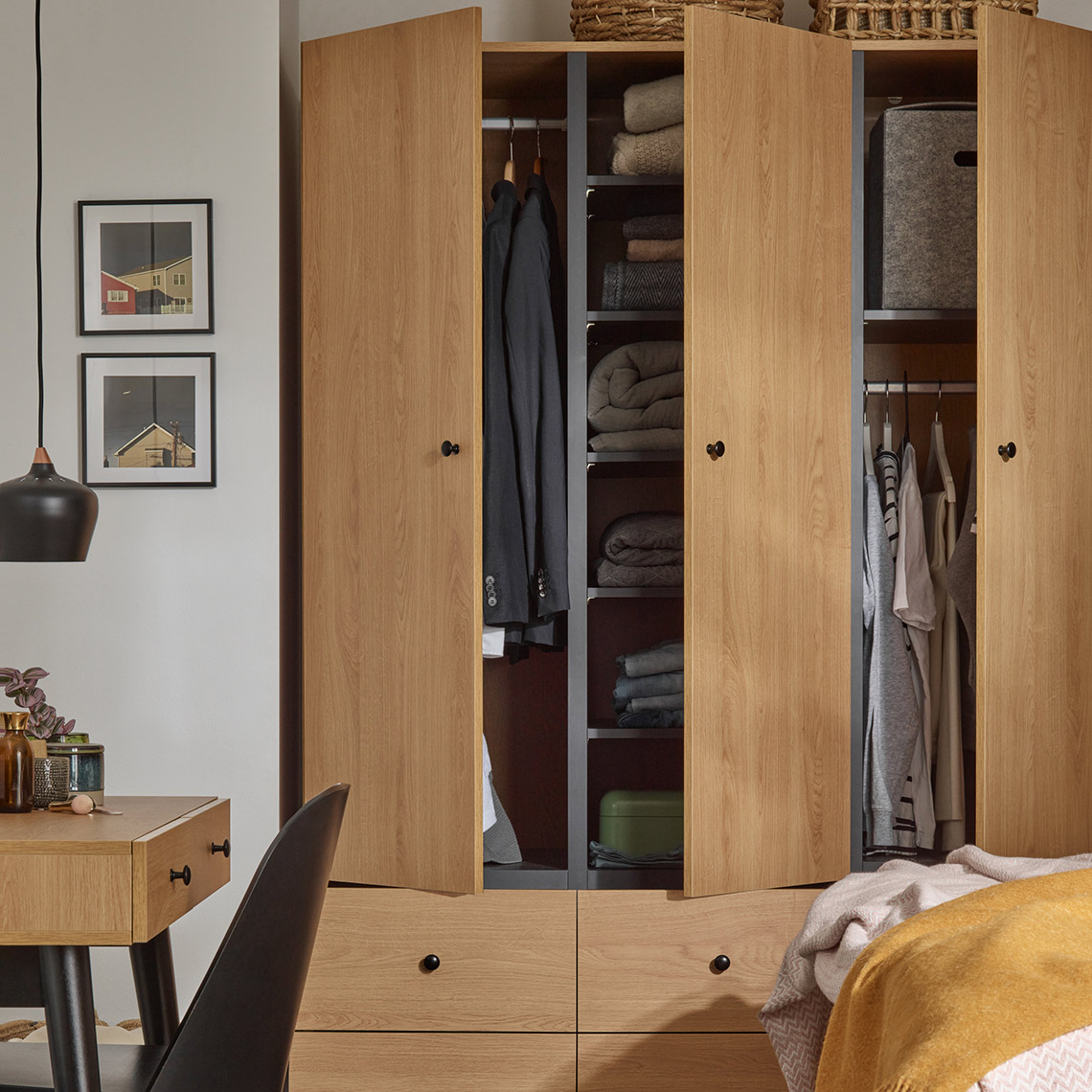 Szukasz mebli do sypialnianej garderoby? 3-drzwiowa szafa Creative bez trudu pomieści Twoje ubrania i dodatki. Wygląd i układ mebla możesz dostosować do swoich potrzeb, korzystając z innowacyjnego systemu meblowego Creative.