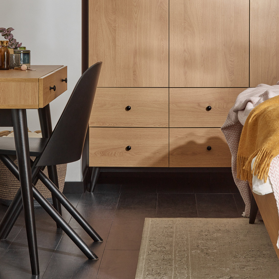 - Do szafy dobierz nogi lub stelaż – do wyboru jest aż 12 modeli o różnym wyglądzie i wysokości. Jeśli chcesz postawić szafę tuż nad podłogą, zdecyduj się na niskie ślizgacze.