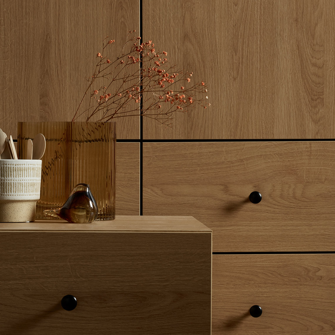 - Dopasuj uchwyty do drzwi i szuflad, wybierając spośród 11 wariantów. By uzyskać gładkie fronty, skorzystaj z dotykowego mechanizmu Push to open.