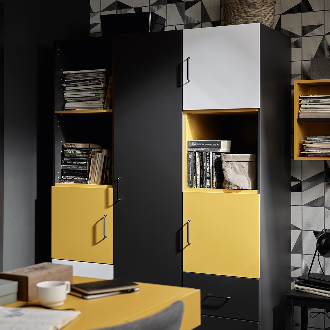 - Wybrane elementy szafy mogą zostać wykończone w jednej z 11 różnorodnych barw. Mieszaj różne rozwiązania, nadając swojej szafie niepowtarzalny wygląd.