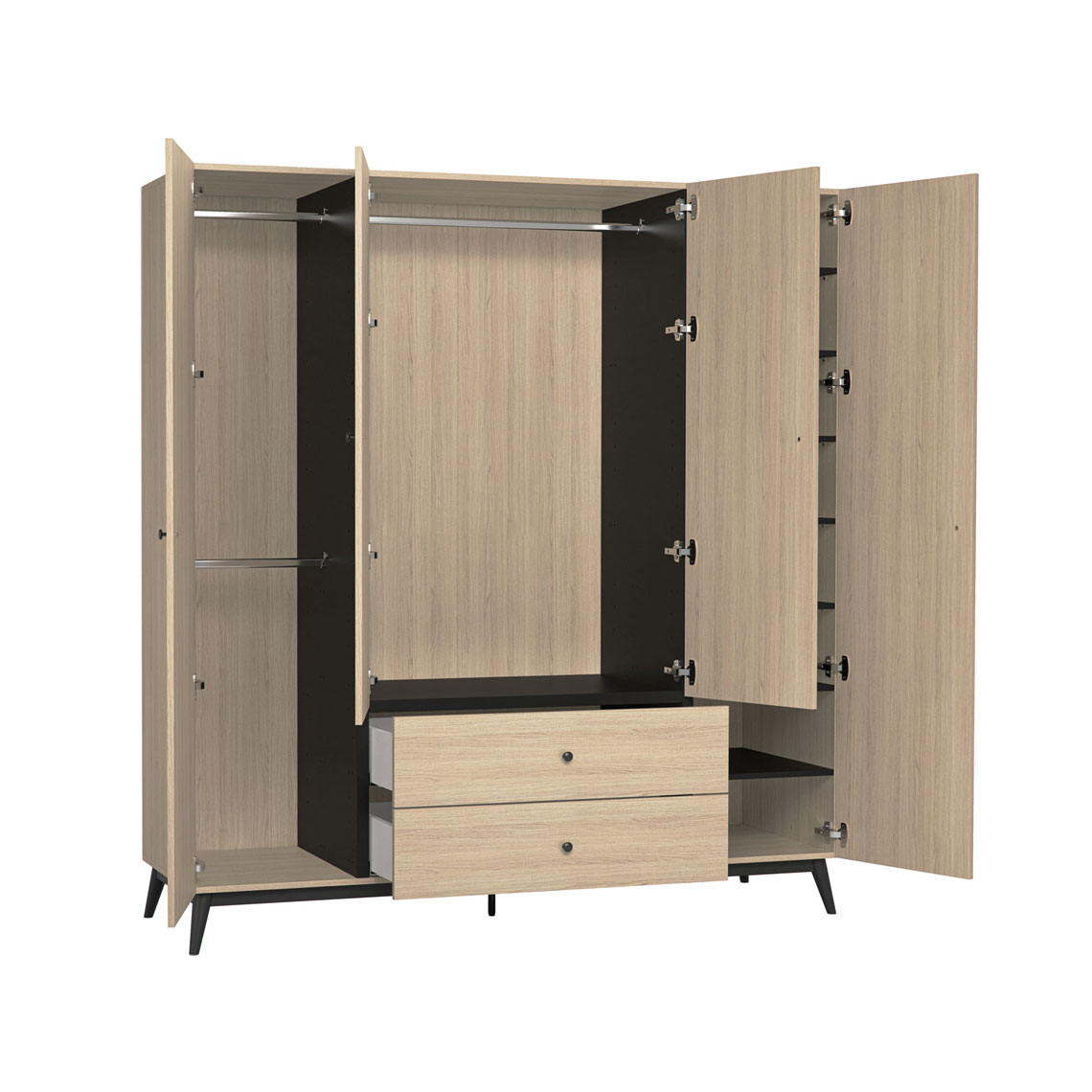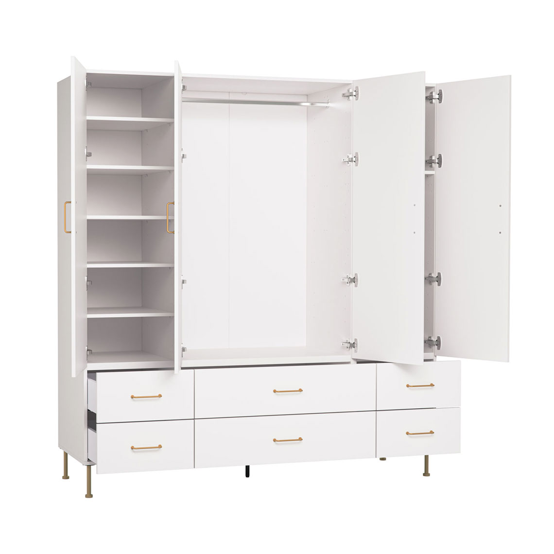 4-drzwiowa szafa Creative to pojemna garderoba, którą łatwo dopasujesz do swoich potrzeb. Z innowacyjnym systemem meblowym Creative możesz dowolnie konfigurować układ półek, drążków na ubrania i szuflad oraz decydować o wyglądzie mebla..