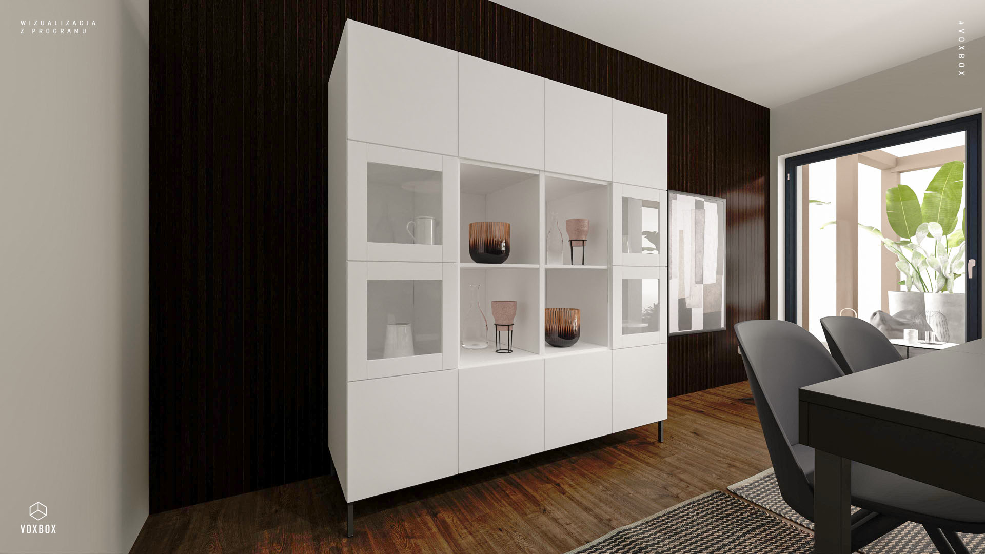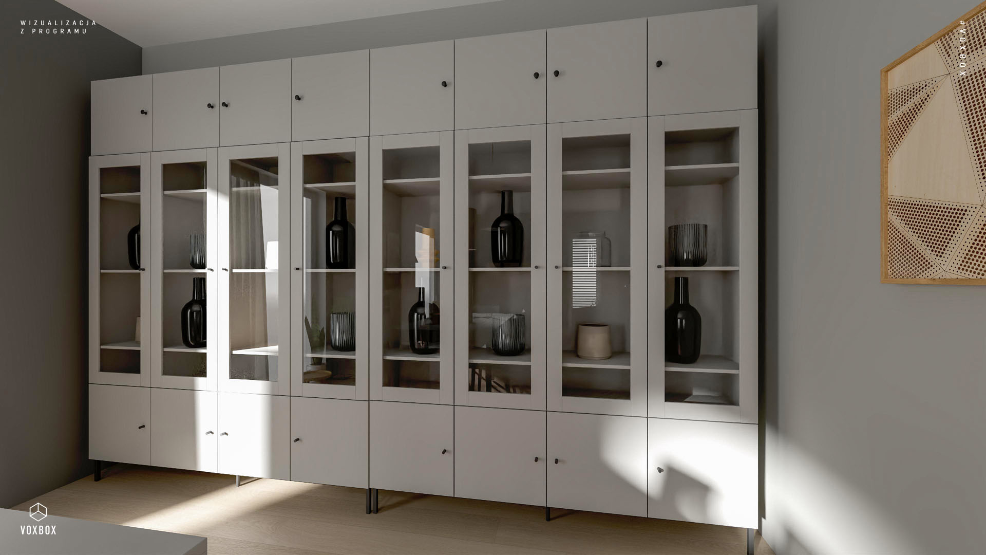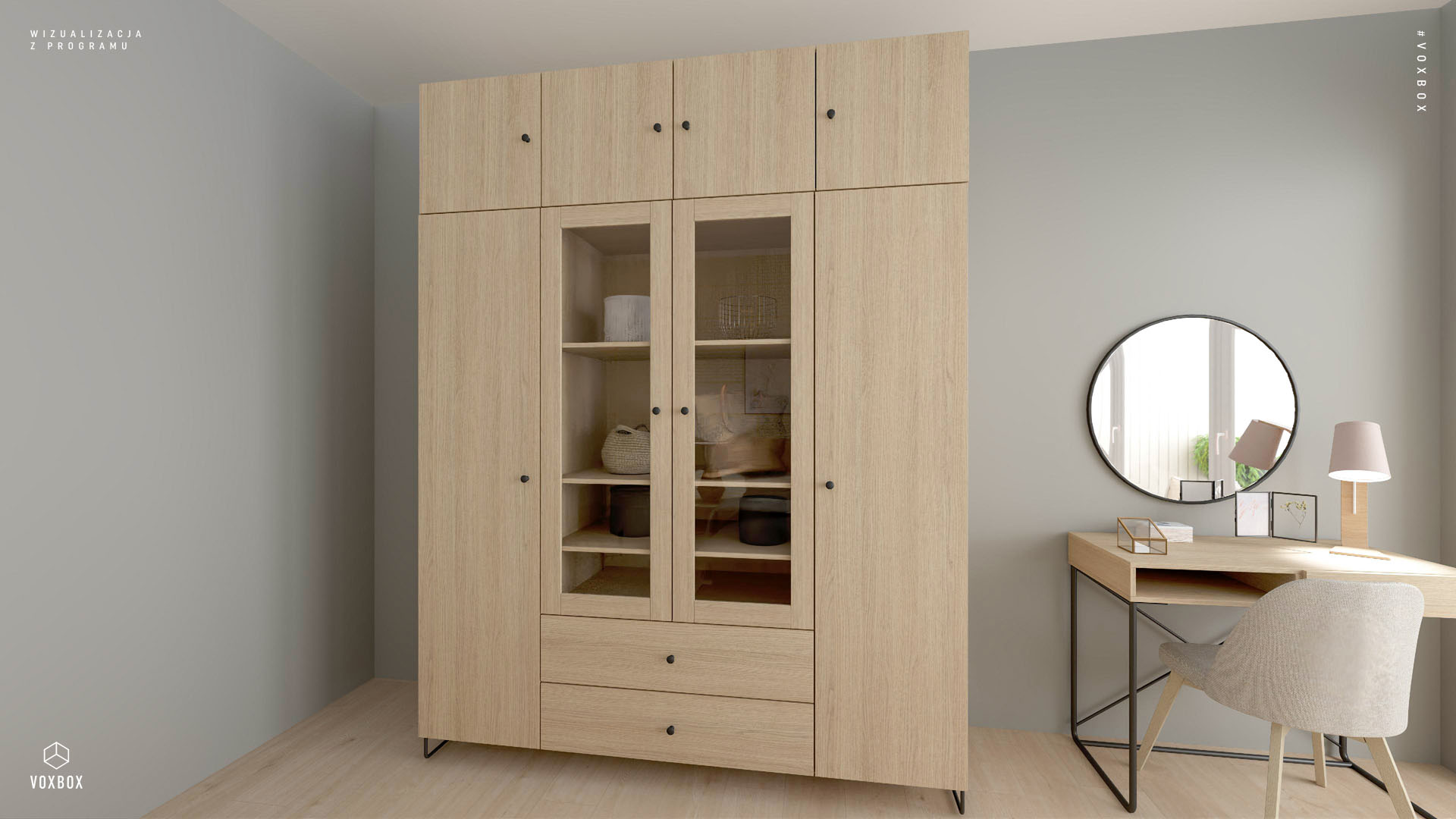 Model zaprezentowany w konfiguratorze nie oddaje w pełni kolorystyki szafy i jej detali. Wynika to m.in. z różnic pomiędzy ekranami urządzeń, na których oglądamy meble – niektóre z nich mogą zaburzać rzeczywisty odcień poszczególnych barw. Jeśli chcesz lepiej poznać poszczególne barwy i materiały, zobacz zdjęcia systemu Creative lub odwiedź najbliższy salon VOX.