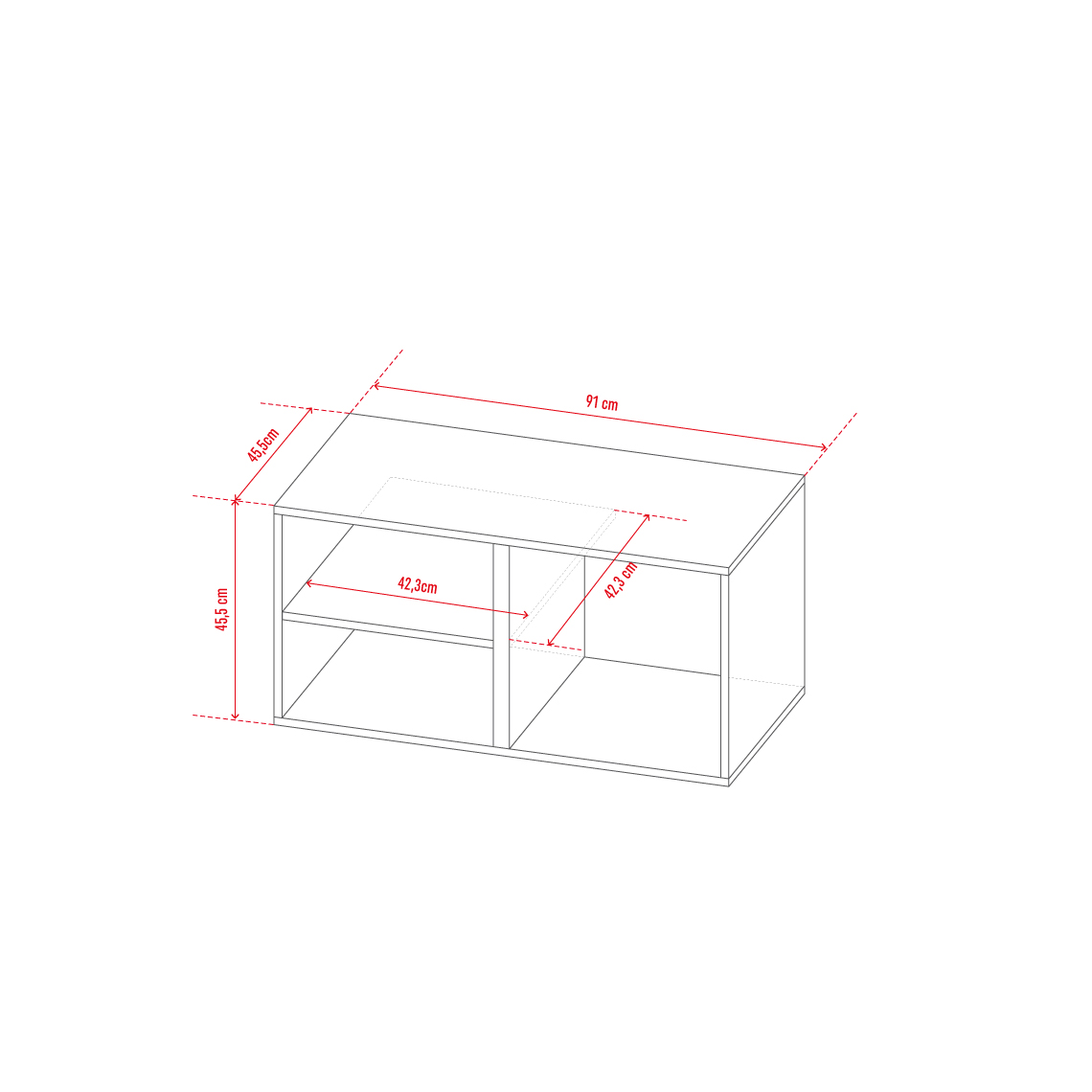 - Półki: płyta wiórowa laminowana (grubość: 16 mm).