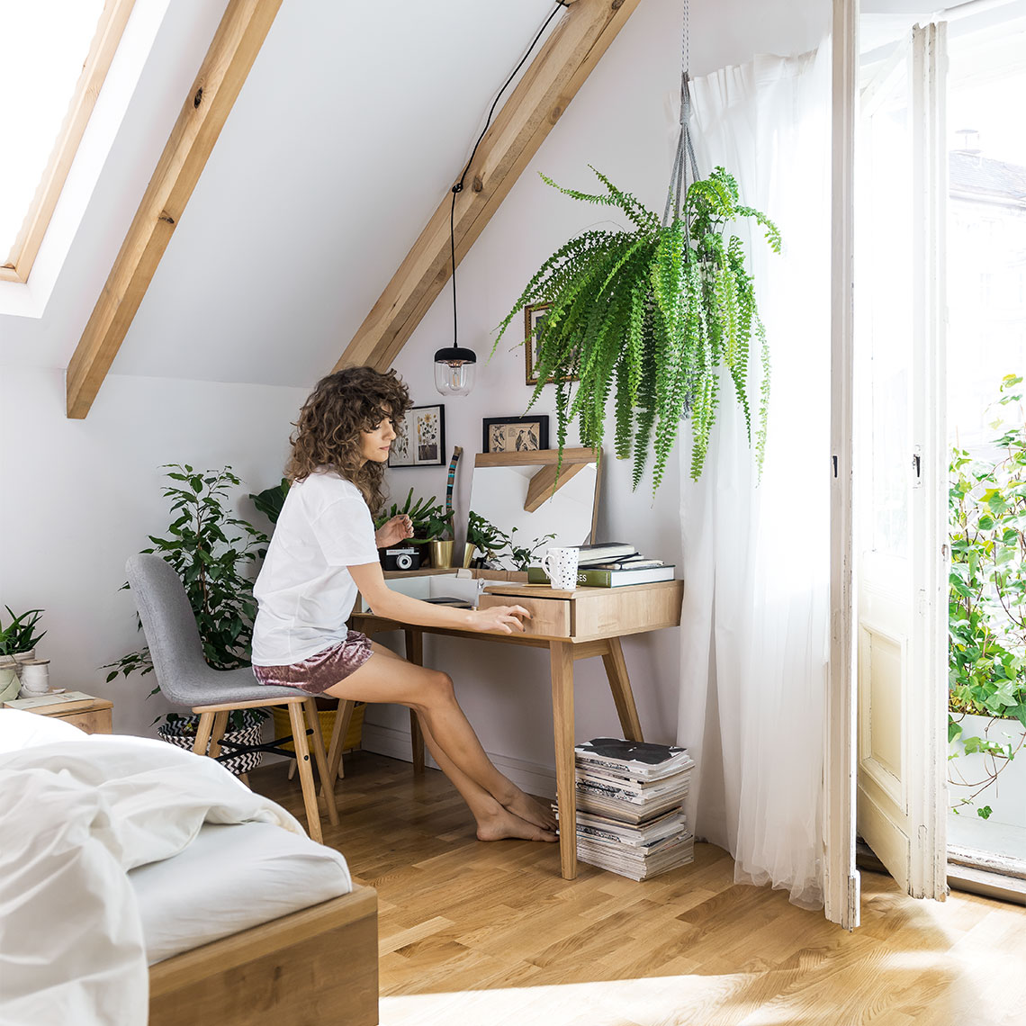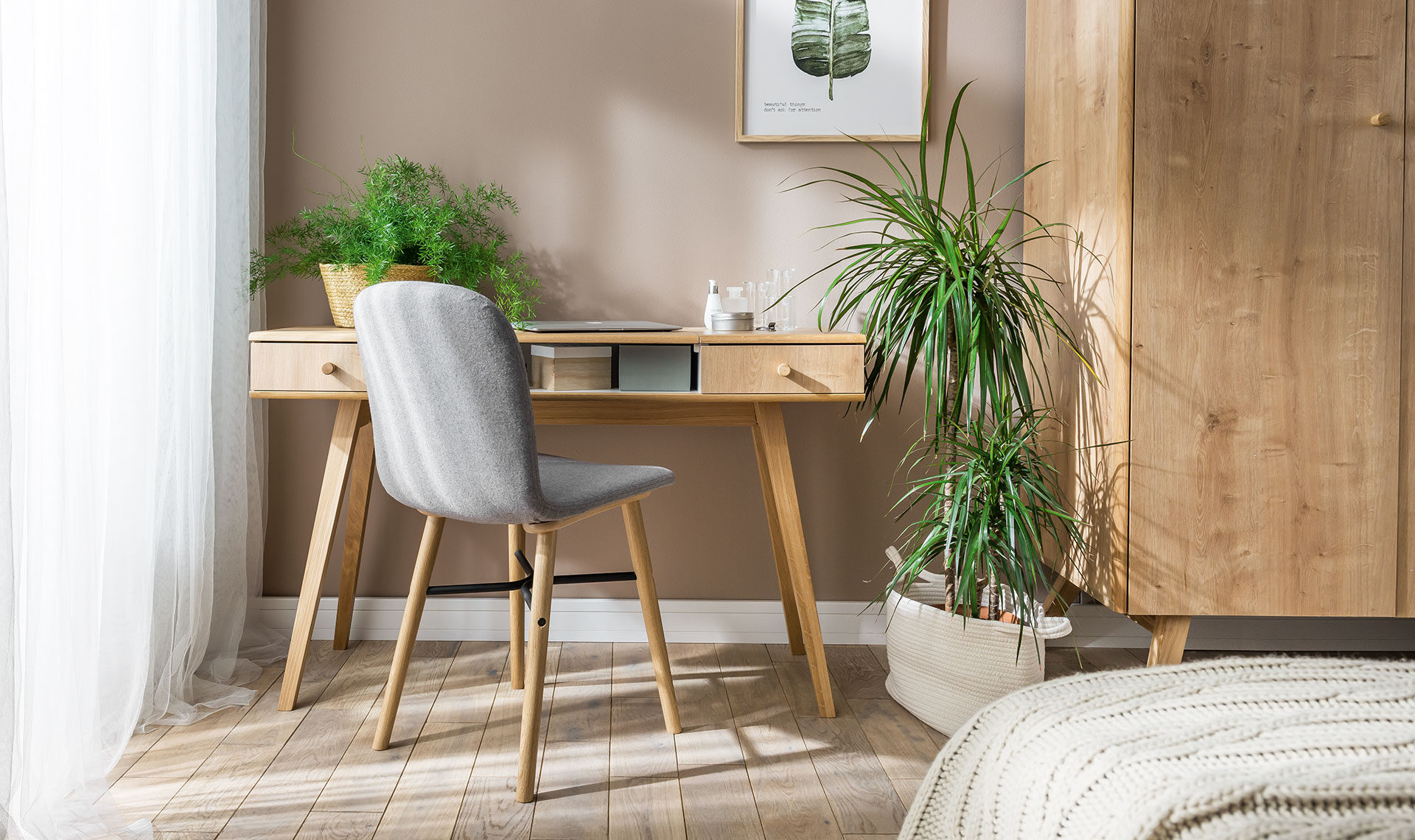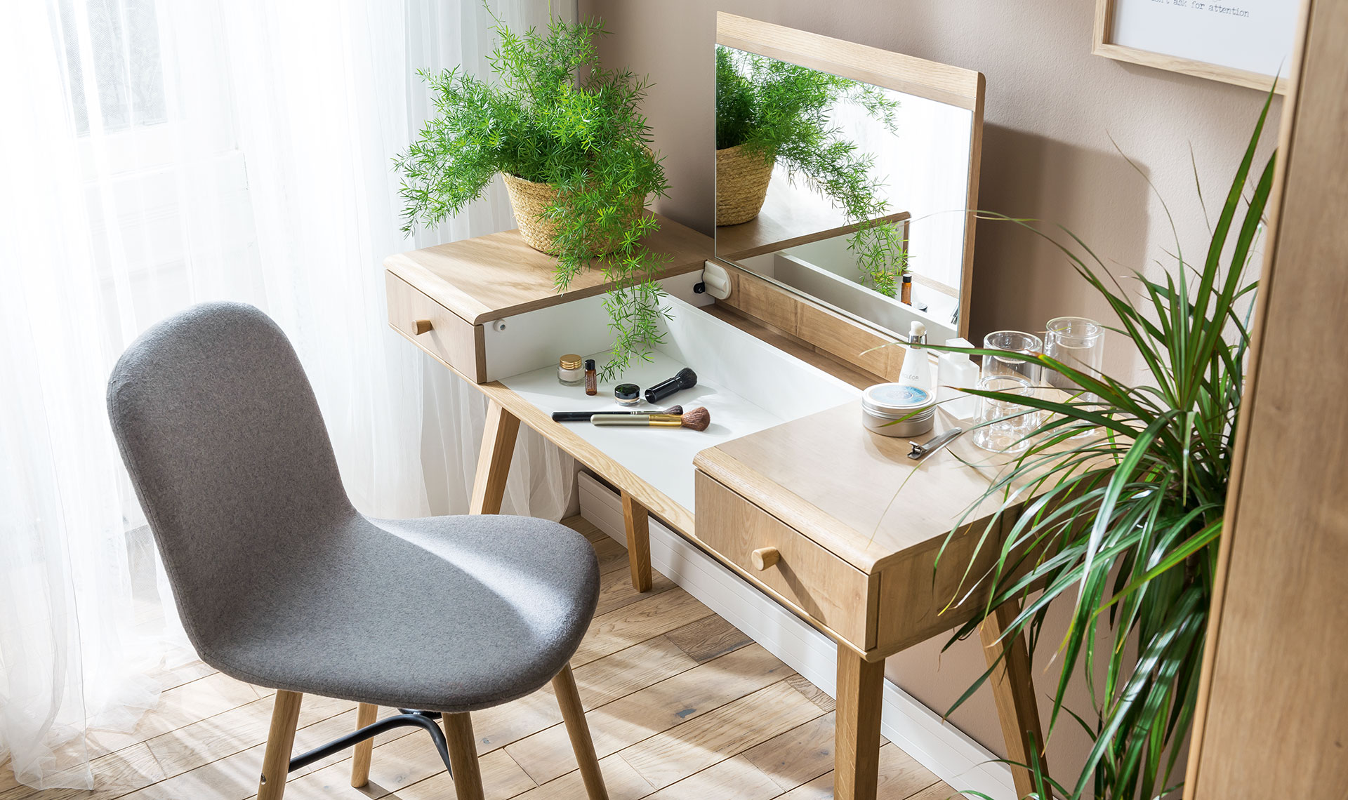 - Lekkości i szlachetności dodają toaletce długie, skośne nogi z drewna dębowego. Pojawiają się one również w pozostałych meblach z kolekcji Nature. Dzięki temu z łatwością stworzysz spójną aranżację swojej sypialni.