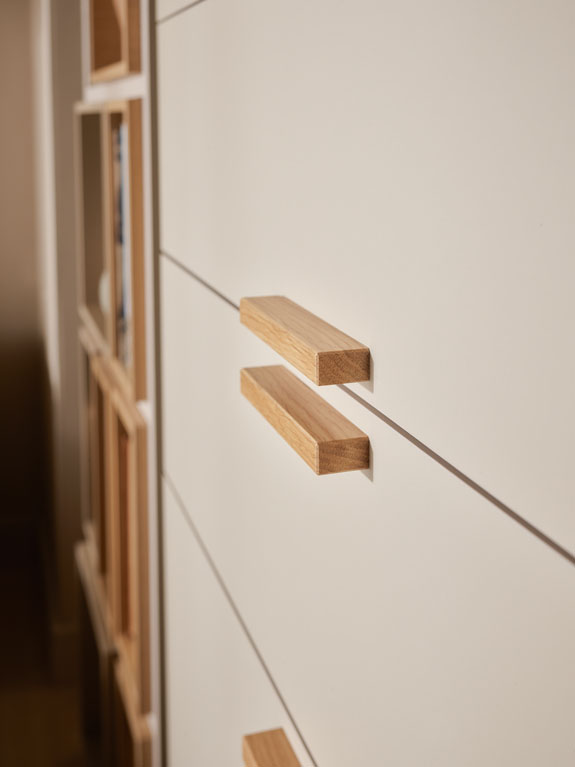 - Wybierając metalowe uchwyty w kolorze dopasowanym do mebli, stworzysz minimalistyczną, subtelną aranżację. Z kolei wersja dębowa wprowadzi do wnętrza jeszcze więcej ciepła.