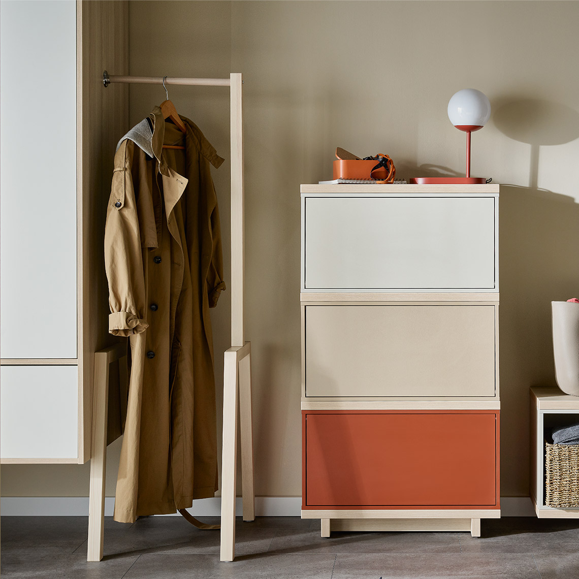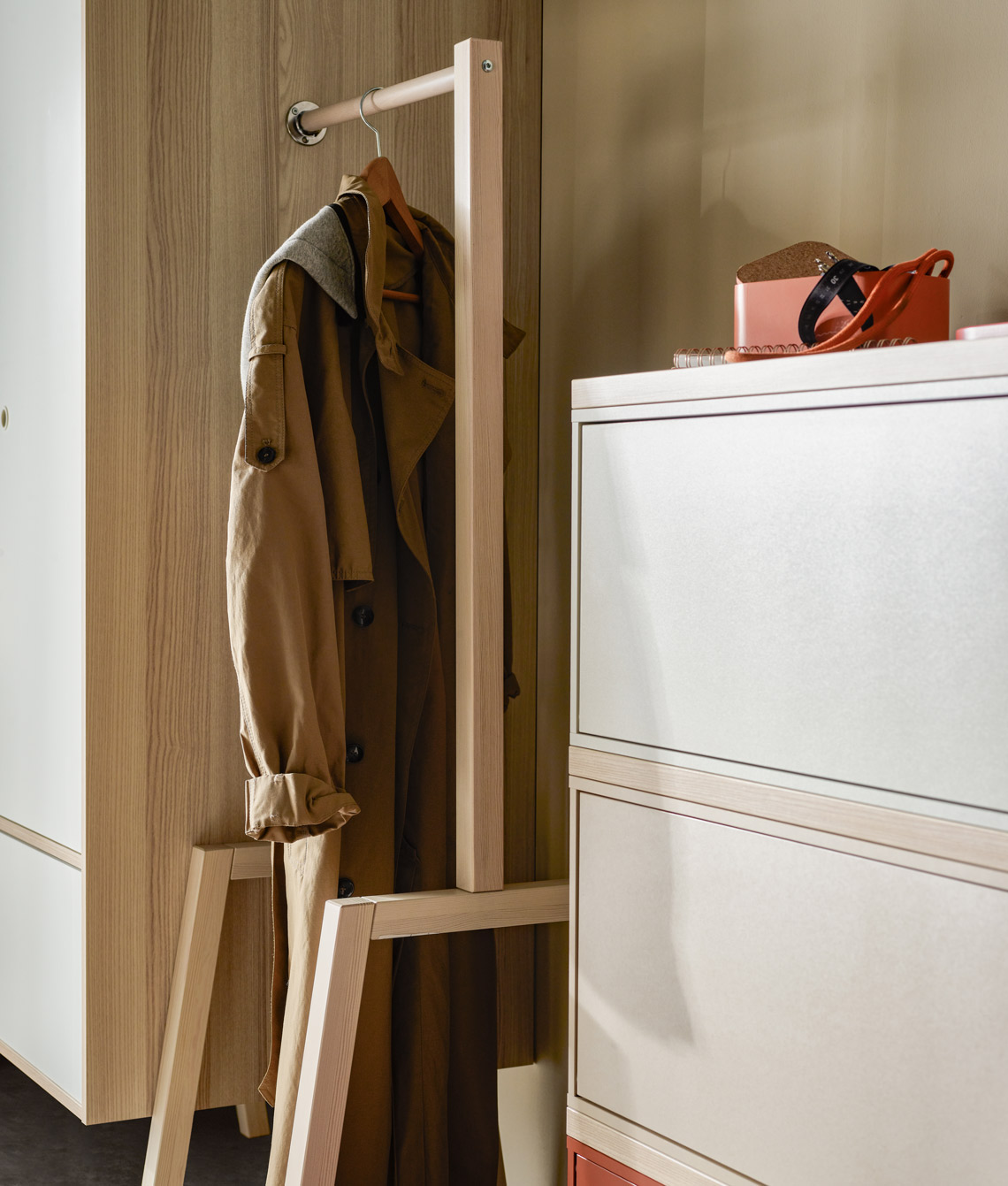 - Na wieszaku można przechowywać najczęściej noszone ubrania lub zestawy odzieży na następny dzień. Mebel może posłużyć również do wieszania toreb i dodatków.