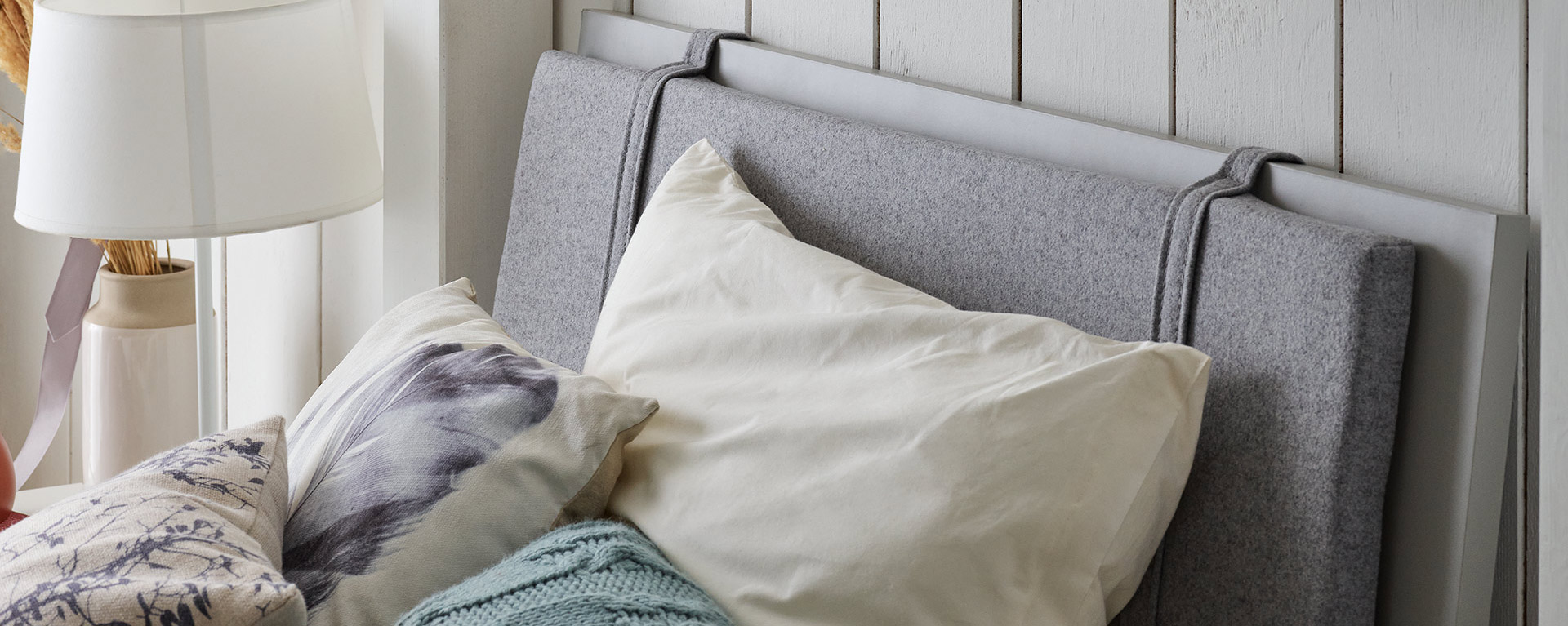 Zagłówek wiszący Simple występuje w kilku rozmiarach i dedykowany jest łóżkom: 120x200, 140x200,180x200 oraz 90x200 z kolekcji Simple. Wykonany jest z wysokiej jakości wełny w kolorze szarym pasującym do wszystkich konfiguracji kolorystycznych łóżek Simple. Wiesza się go na specjalnych szelkach, które pełnią rolę mocowania oraz elementu ozdobnego. Istnieje możliwość przełożenia zagłówka na drugą stronę łóżka lub po prostu jego uniesienia, gdy np. zmieniamy pościel lub układamy poduszki. Zagłówek ma grubość 3 cm, dzięki czemu zapewnia najlepsze wsparcie w miejscu oparcia pleców.