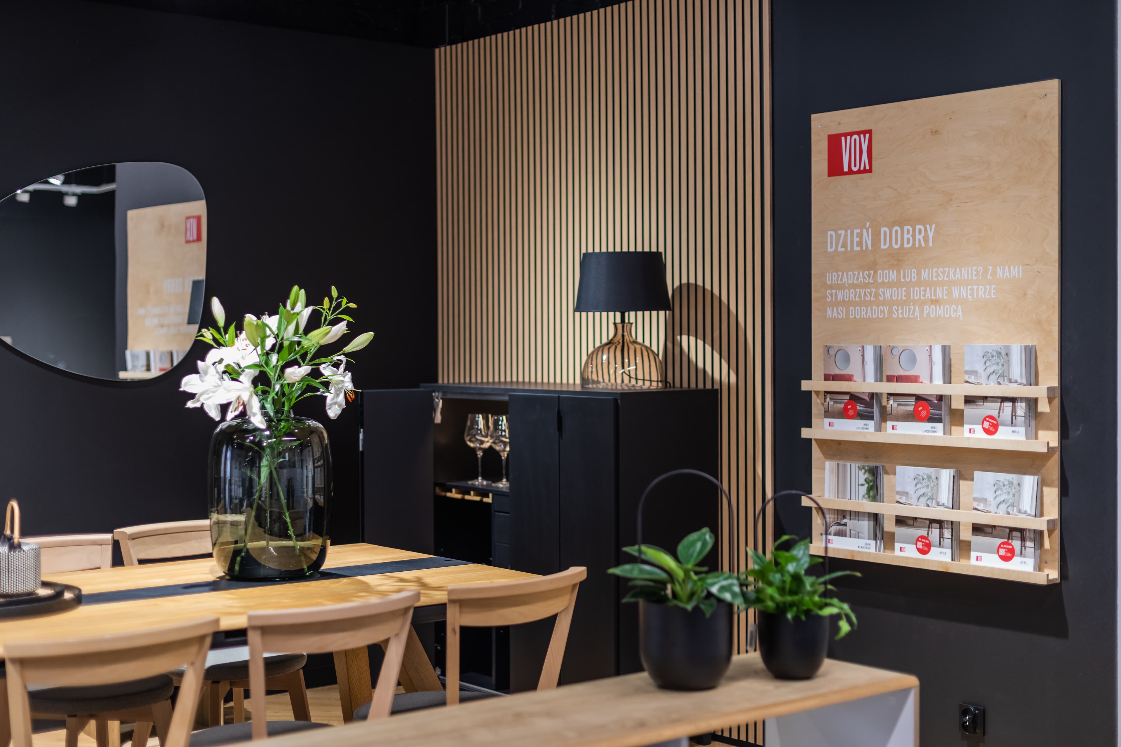 Salon VOX z ofertą mebli, drzwi, podłóg i artykułów dekoracyjnych to miejsce pełne pomysłów i inspiracji na wystrój wnętrz. Został zaprojektowany tak, by aranżacje różnych pomieszczeń przypominały realne wnętrza. Wiemy, że niezwykle ważna w procesie zakupowym jest rozmowa z wykwalifikowanym doradcą, który odpowie na wszystkie pytania i rozwieje wątpliwości. Każdy klient może liczyć na kompleksową obsługę i pomoc ze strony specjalistów. Nasi doradcy wesprą w procesie projektowania i wyboru odpowiednich produktów, korzystając z programu VOXBOX stworzą projekt Twojego wymarzonego wnętrza.